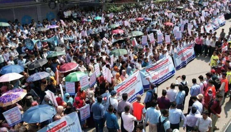 রাজধানীর ব্যস্ত দিলকুশা। অফিসপাড়ার প্রতিদিনের কোলাহলের মাঝেই রোববার (১৯ এপ্রিল) সকাল ১১টায় ভিন্ন এক দৃশ্য। হাতে প্ল্যাকার্ড, চোখে ক্ষোভ আর কণ্ঠে ন্যায়বিচারের দাবি।